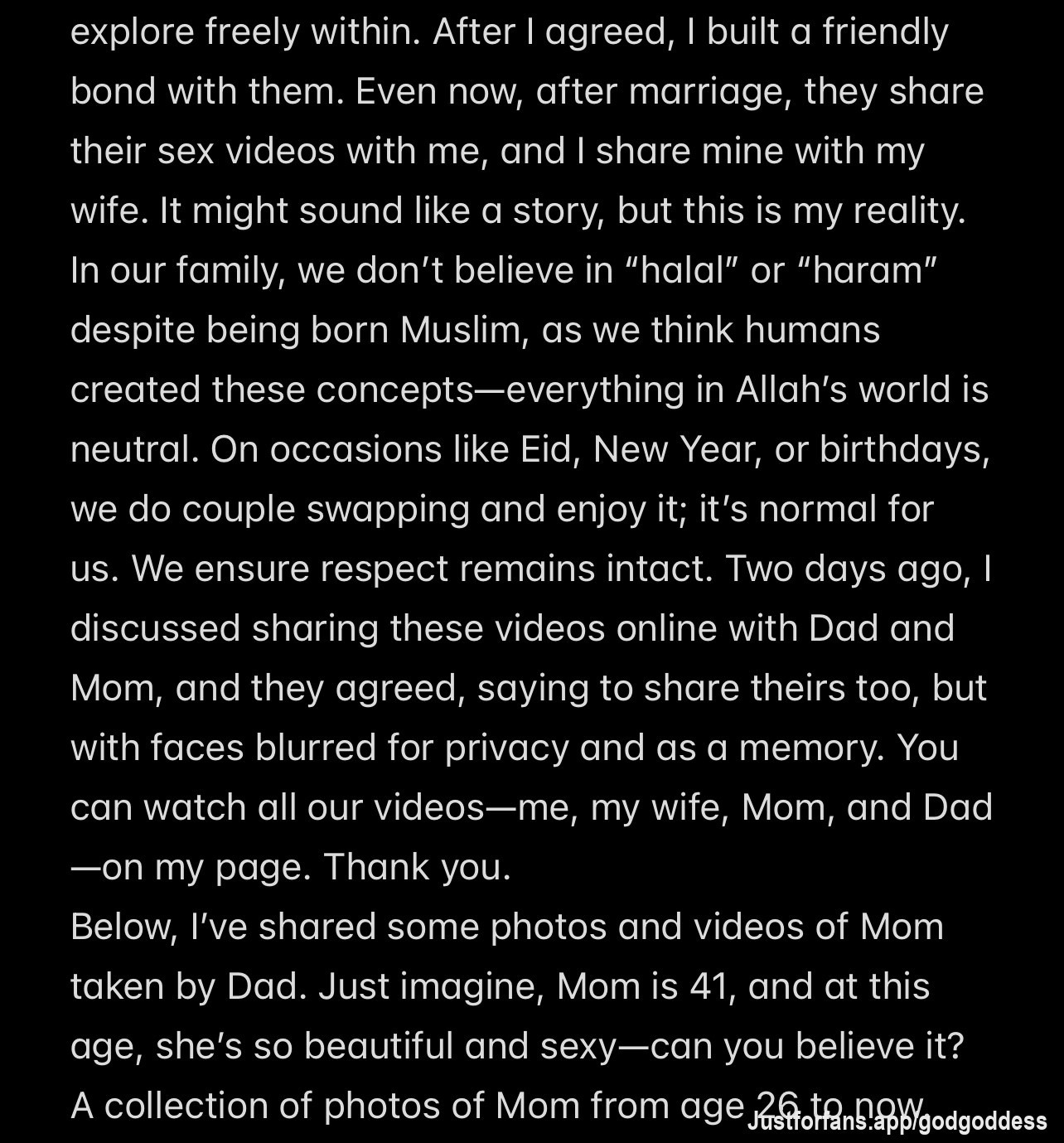 Two days ago, I discussed sharing these videos online with Dad and Mom, and they agreed, saying to share theirs too, but with faces blurred for privacy and as a memory. You can watch all our videos—me, my wife, Mom, and Dad—on my page. Thank you.Below, I’ve shared some photos and videos of Mom taken by Dad. Just imagine, Mom is 41, and at this age, she’s so beautiful and sexy—can you believe it?